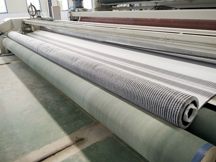 膨潤(rùn)土防水毯是一種專門用于人工湖泊水景、垃圾填埋場(chǎng)、地下車庫(kù)、樓頂花園、水池、油庫(kù)及化學(xué)品堆場(chǎng)等防滲漏的土工合成材料,它是由高膨脹性的鈉基膨潤(rùn)土填充在特制的復(fù)合土工布和無紡布之間,用針刺法制成的膨潤(rùn)土防滲墊可形成許多小的纖維空間,使膨潤(rùn)土顆粒不能向一個(gè)方向流動(dòng),遇水時(shí)在墊內(nèi)形成均勻高密度的膠狀防水層,有效的防止水的滲漏。膨潤(rùn)土防水毯按生產(chǎn)工藝可分為:針刺法鈉基膨潤(rùn)土防水毯、針刺覆膜法鈉基膨潤(rùn)土防水毯以及膠粘法鈉基膨潤(rùn)土防水毯。 針刺覆膜法鈉基膨潤(rùn)土防水毯,是在針刺鈉基膨潤(rùn)土防水毯的非織造土工布的外表面上復(fù)合一層高密度聚乙烯土工膜。